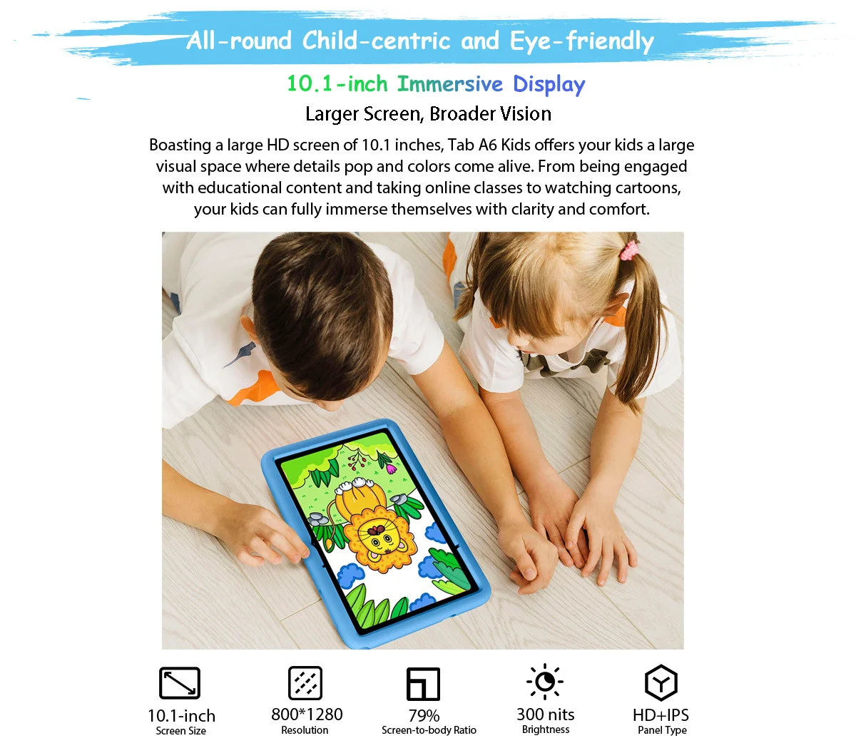 800x1280 ekran çözünürlüğü ve 10.1" Büyüklüğünde olan HD IPS ekranın keyfini sürerken 300 nit ekran parlaklığı ile görüntüden herhangi bir parlaklık kaybı yaşamadan çocuklarınızın göz sağlığını koruyarak üstün bir deneyim yaşayabilirsiniz.